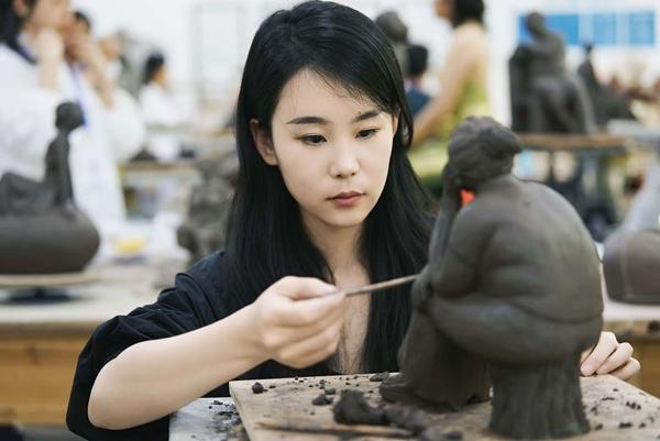 2024年4月,第十七期陶瓷雕塑研修班,学员正在创作。景德镇陶瓷大学供图