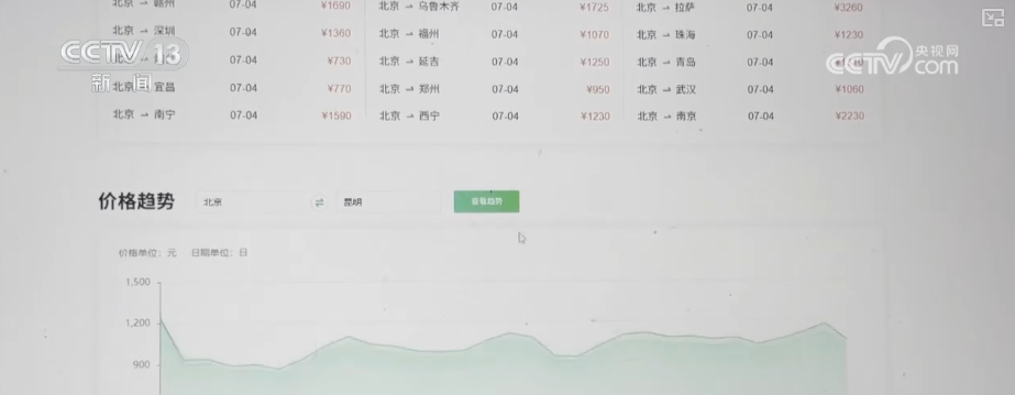 目前,昆明、乌鲁木齐、西安等长线目的地的暑期机票价格已开始小幅上涨。记者查询发现,以北京—昆明机票为例,7月上旬价格在千元左右,7月中旬开始至8月中旬,价格小幅上涨,均价在1200元到1500元之间。