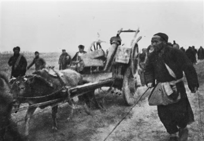香城固战役中群众向前线运送物资。