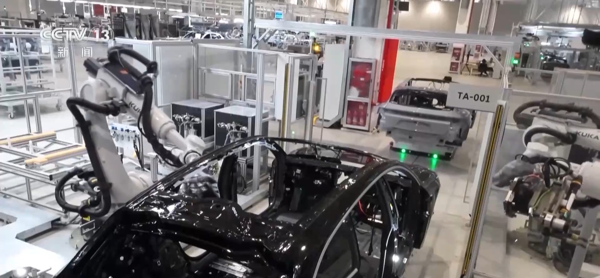 这座“超级工厂”科技感、现代感满满,工厂有超过1800台智能机器人,同时设置1500个AI质检点,全程跟踪每一道生产环节。
