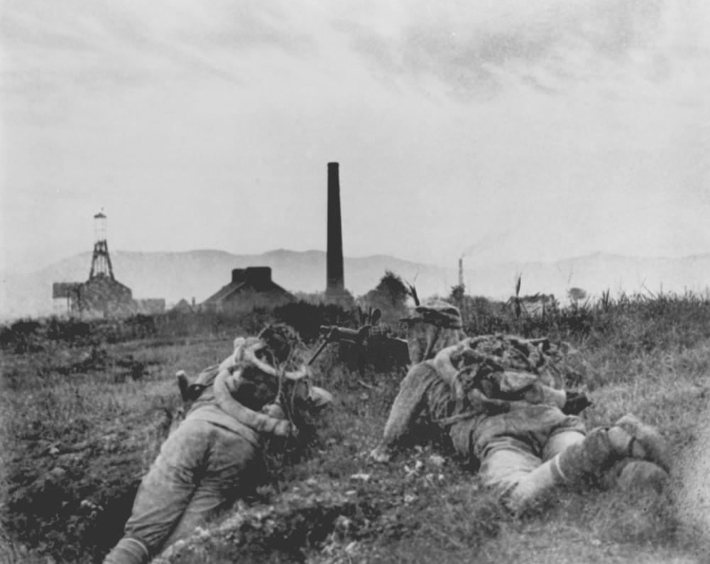 百团大战第一阶段以破袭正太铁路为重点,阳泉位于其“咽喉”部位,成为第一阶段的主战场。这是在山西狮脑山血战中的我军机枪阵地。