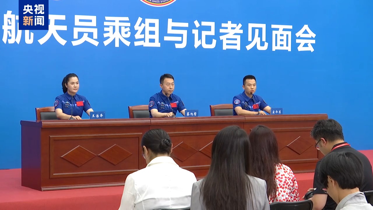今天(7月9日)下午,神舟十九号航天员乘组蔡旭哲、宋令东、王浩泽从太空返回60余天后,在北京航天城首次面向媒体与公众正式公开亮相。