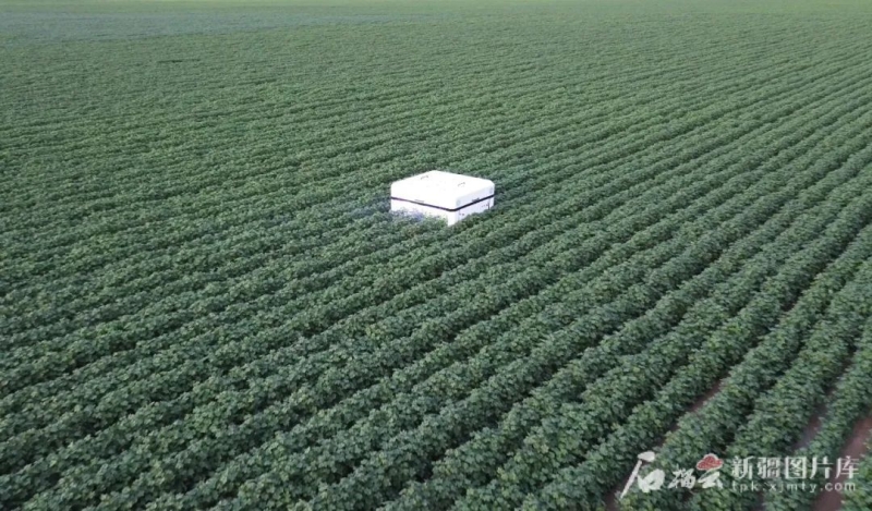 7月7日,在昌吉市榆树沟镇棉田里,棉花激光打顶机器人正在工作。新疆大学供图