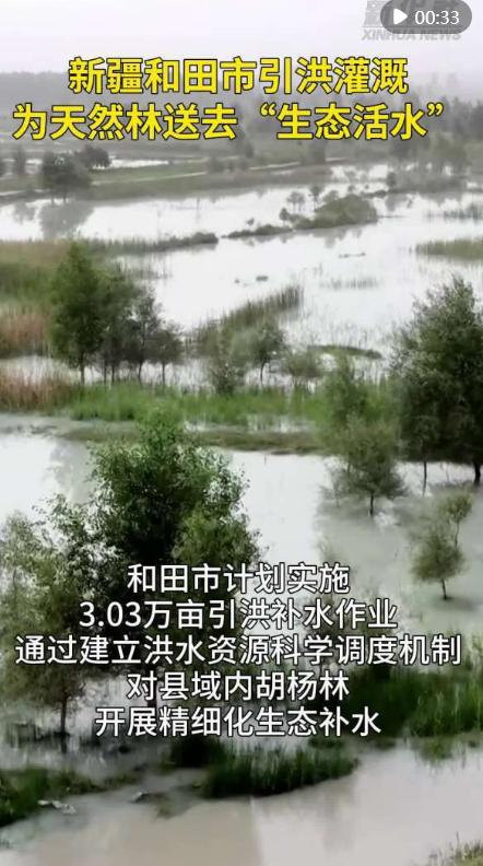 进入七月以来,新疆和田地区玉龙喀什河迎来汛期,当地抢抓这一有利时机,及时启动天然林引洪灌溉工程,将汛期洪水引入和田市阿克恰勒乡、吉亚乡的天然林区,为3万余亩天然林送去“生态活水”。