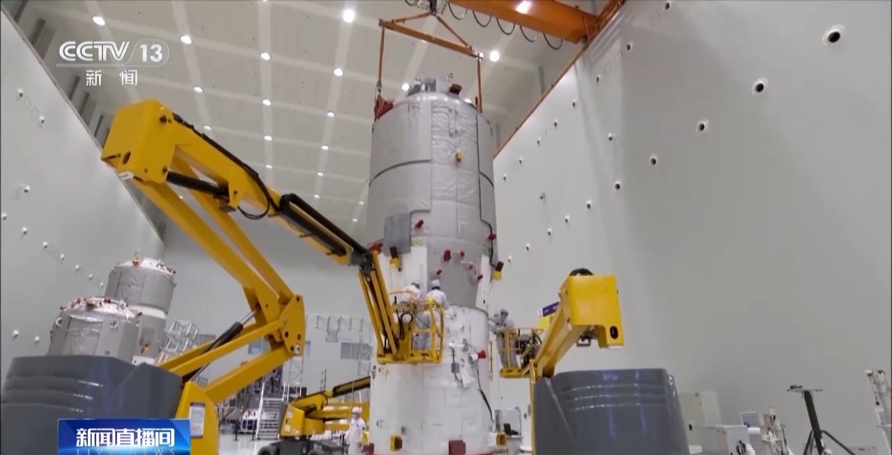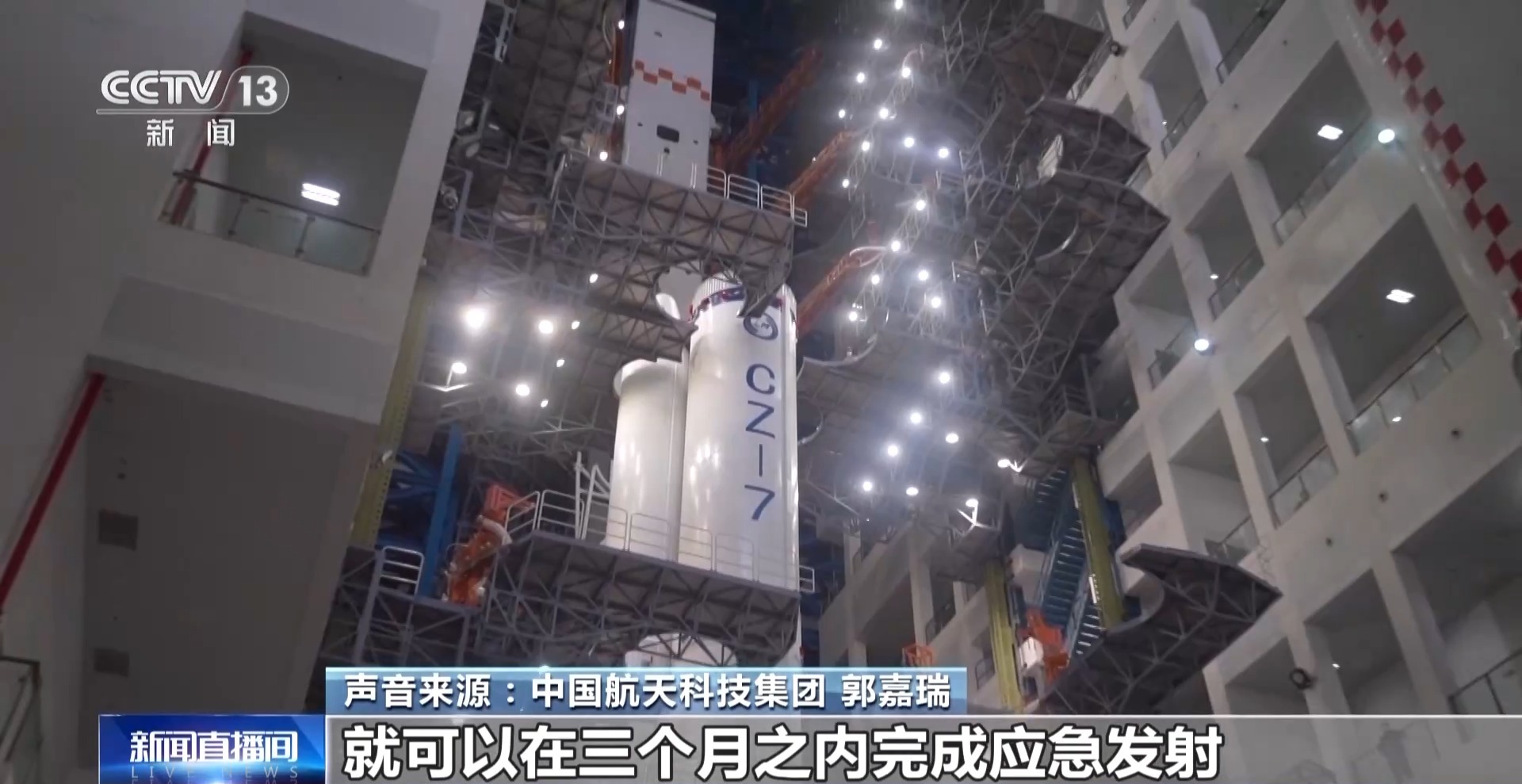 中国航天科技集团 郭嘉瑞:如果空间站遭遇了比较紧急的需求,备份的这枚火箭就可以在三个月之内完成应急发射,这个模式也是类比了长二F火箭的模式,为中国空间站的运营保障做了提升。