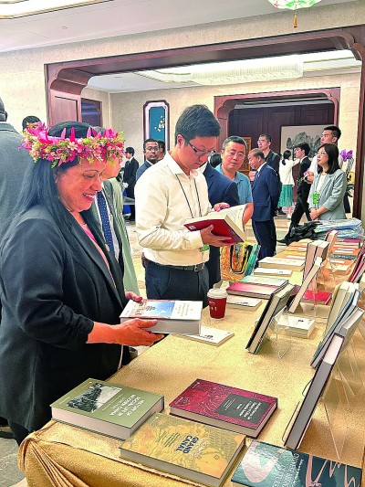 图②:嘉宾在会场翻阅文史哲书籍。光明日报记者 阮紫嫣摄/光明图片
