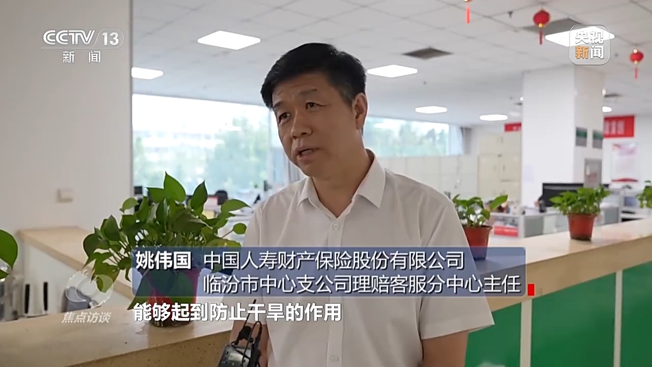 中国人寿财产保险股份有限公司临汾市中心支公司理赔客服分中心主任 姚伟国:没有想到把肥料喷到叶子上能起到防止干旱的作用,我们当时想着他们是不是和第三方合作来骗保,并不能起到防灾的作用。