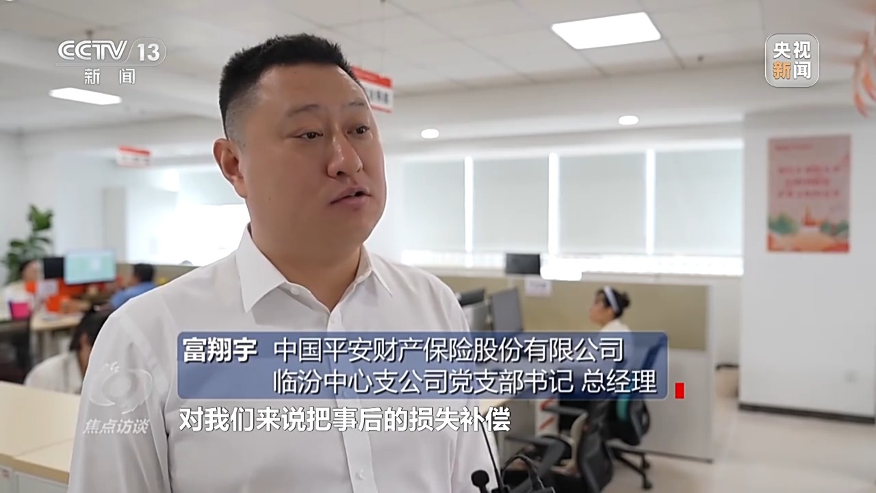 中国平安财产保险股份有限公司临汾中心支公司党支部书记、总经理 富翔宇:老百姓的产量有保证了,对我们来说把事后的损失补偿调整到事中的风险减量工作,对我们的整体成本控制也是有很大帮助的。