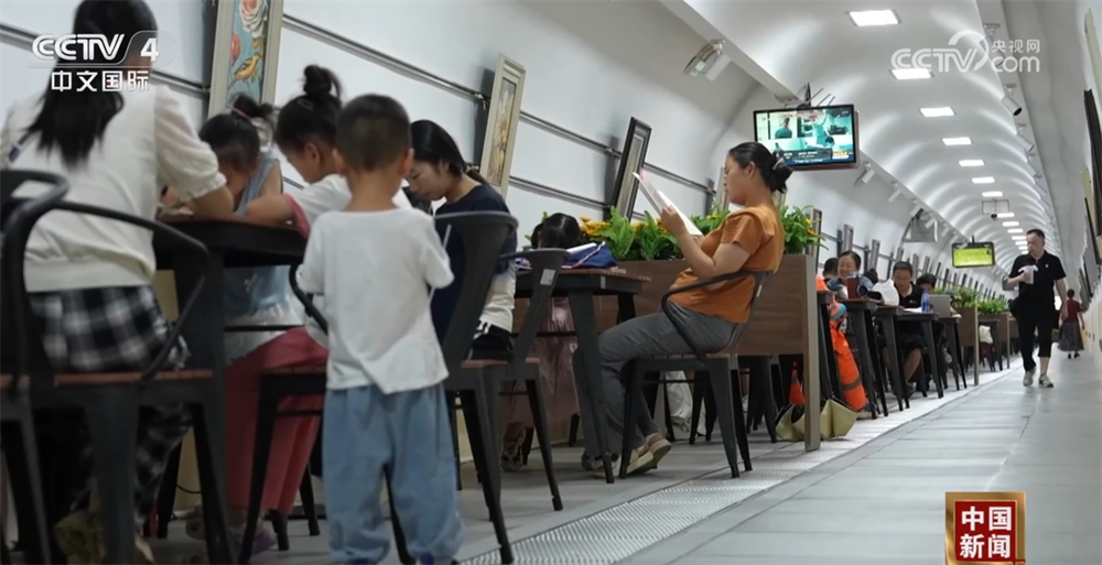 近日,陕西西安市持续高温。15日,西安局部最高气温达42℃以上。为应对高温天气,当地开放人防纳凉中心,供市民纳凉消暑。在位于纬二街的西安人防纳凉中心,这里的温度维持在25℃,并免费为市民提供桌椅、饮用水、电视、无线网络等多种设施设备。