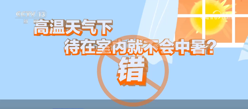 高温天气下,待在室内就不会中暑?错。“室内≠安全”,高温天气下,即使足不出户,仍然可能中暑。专家表示,中暑是由于人体内的热量不能及时散发出去,造成的体内蓄热,所以如果室内温度高,湿度大又不通风,如果不开空调或者电风扇,就给中暑提供了环境条件。由于老年人体温调节机能相对比较弱,就更容易发生中暑。
