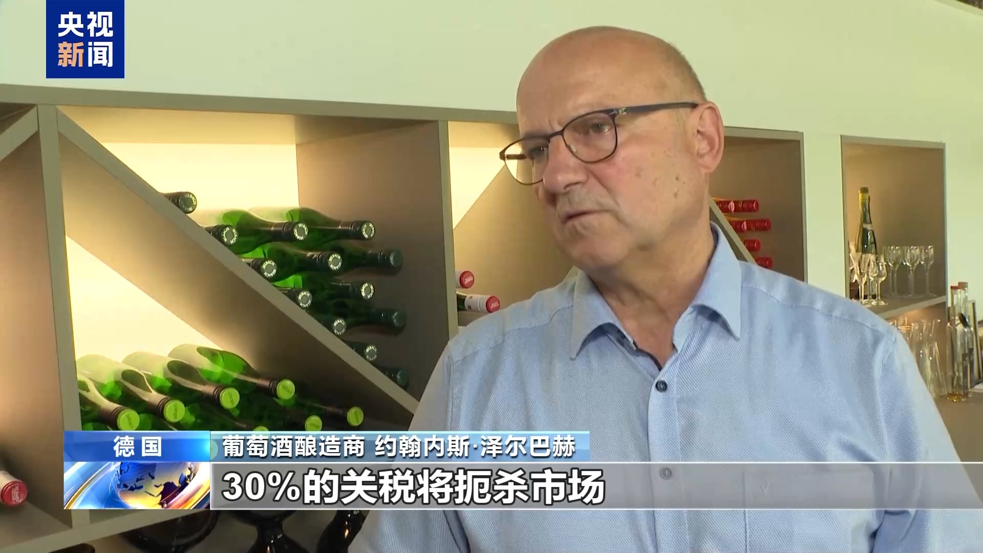 葡萄酒酿造商 约翰内斯·泽尔巴赫:对于我们来说,30%的关税将扼杀市场,这是由于美国分销系统的特殊性,即所谓的三层体系。酒精饮料只能通过三层体系销售,美国零售商在每一层都要赚钱,我们都非常紧张,但我们正努力保持镇定,保持冷静。我们希望我们在布鲁塞尔的代表,当然还有在柏林的代表,不会忽视我们的诉求。