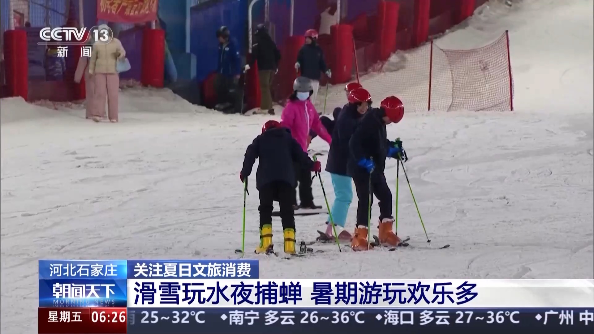 河北石家庄:滑雪玩水夜捕蝉 暑期游玩欢乐多