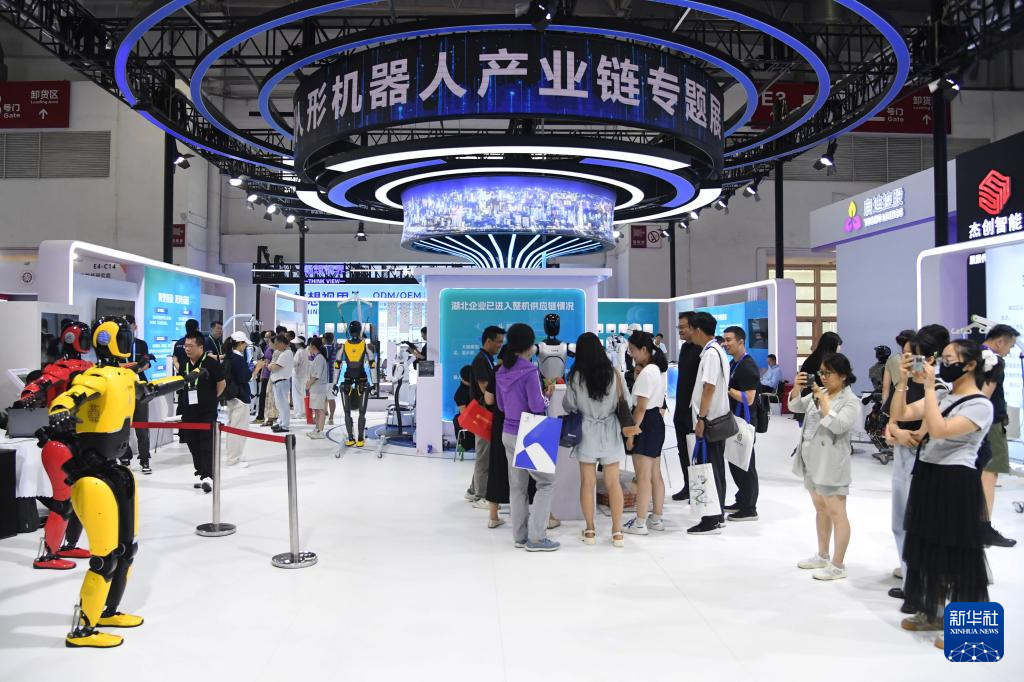 7月19日,参观者在数字科技链展区9号公司展台参观。