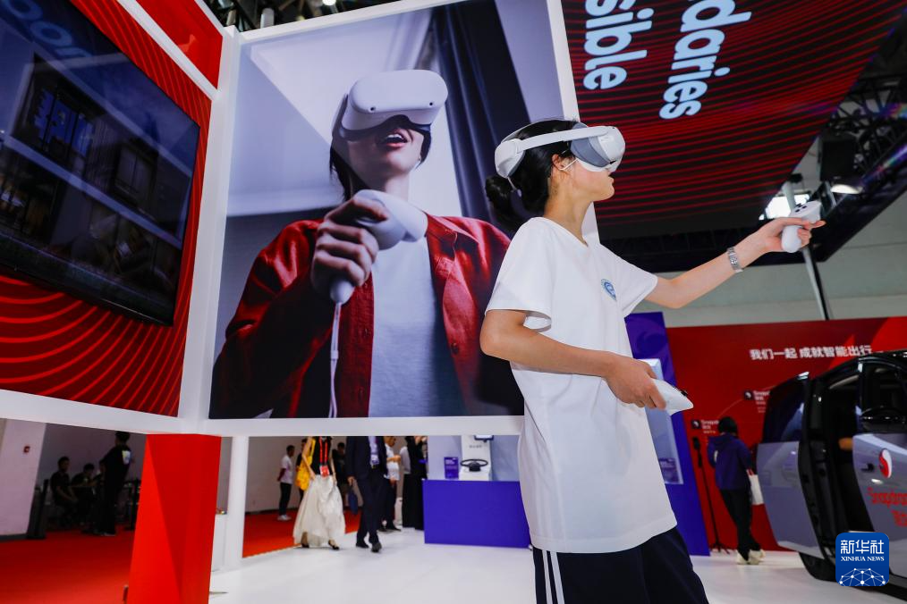 7月19日,观众在第三届链博会数字科技链展区高通展台内体验搭载骁龙处理器的智能设备。