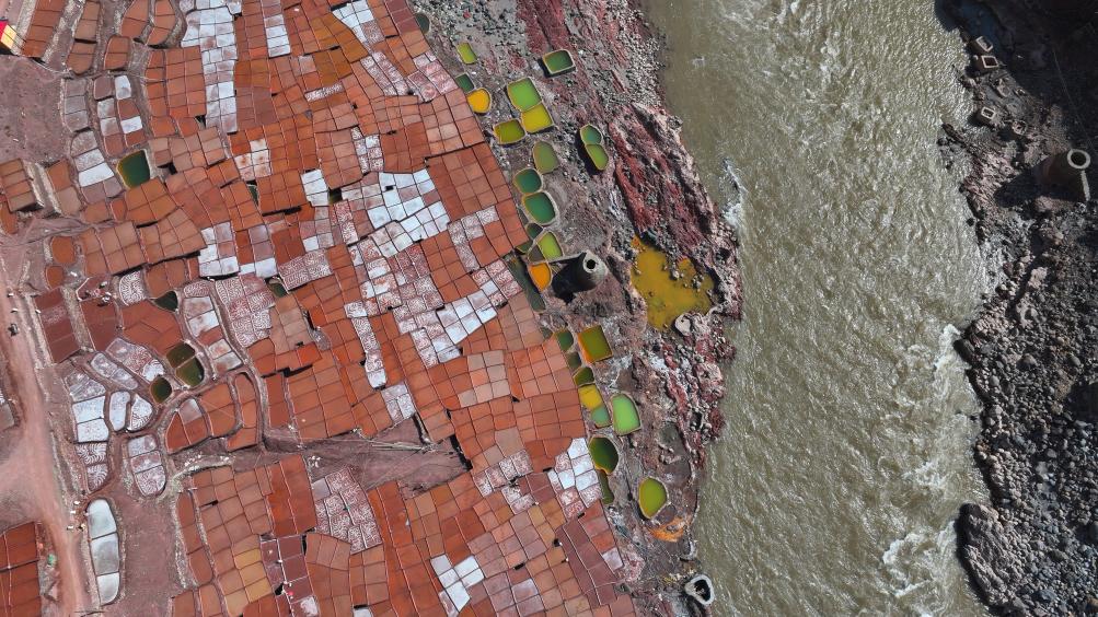 澜沧江畔的千年盐田。井盐晒制技艺被列入国家级非物质文化遗产名录。新华社记者 党黎 摄