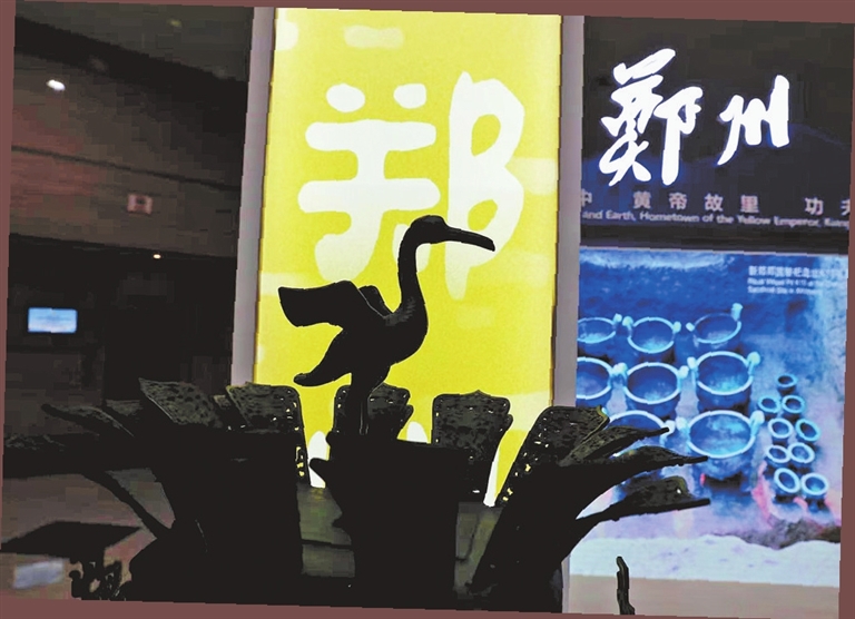 峰会现场,郑州城市展区展出的莲鹤方壶工艺品(7月23日摄)。 冯小敏 摄