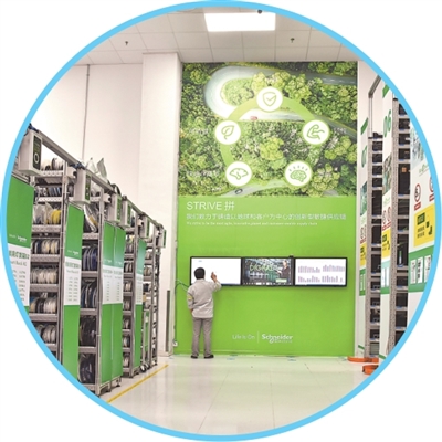 施耐德智能亮灯货架一角。