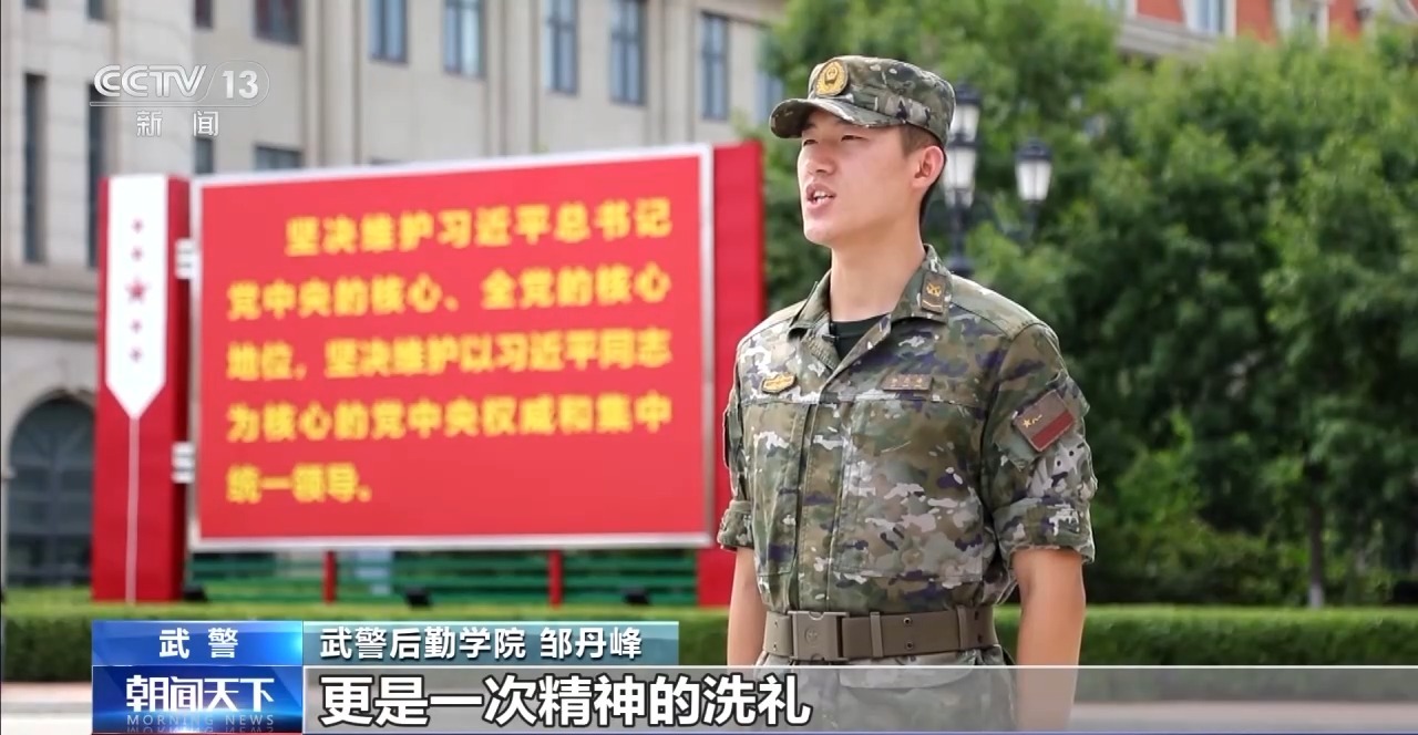 武警后勤学院 邹丹峰:这次升旗仪式不仅是对建军节的庆祝,更是一次精神的洗礼,我会把这份感动和责任融入到日常工作中,站好每一班哨,守护好这片为战育人的净土。