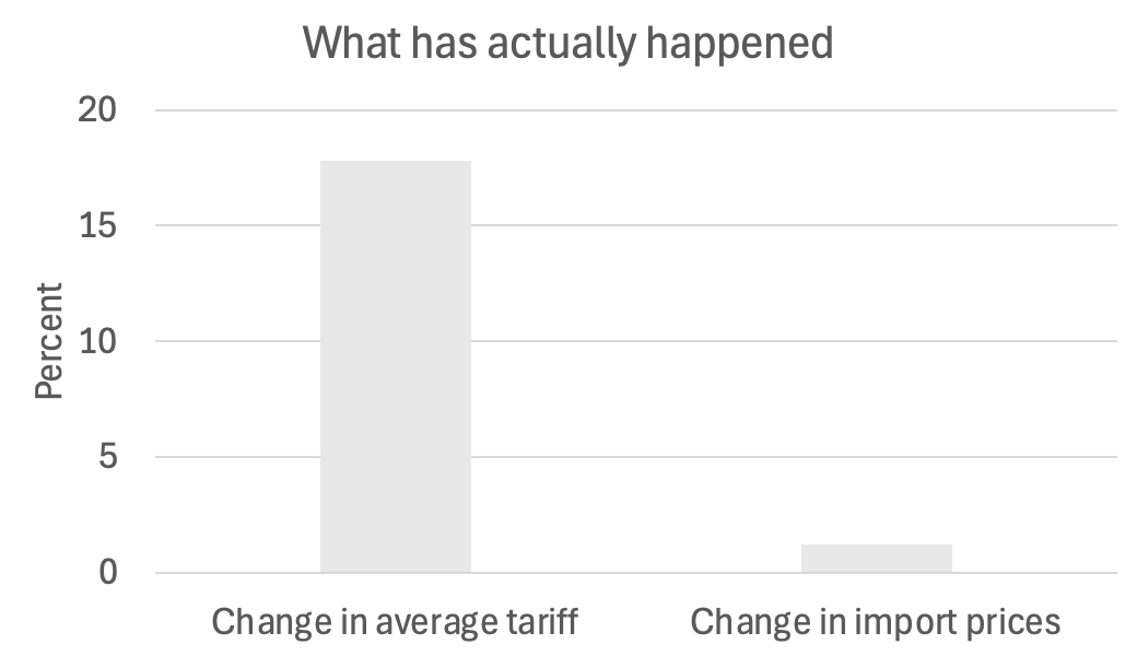 克鲁格曼晒出数据称,如果真按美国政府所说,关税由外国承担,美国买主不受影响,那商品进入美国的价格应当降低,以抵消加征的关税,这样才能让物价和之前持平。