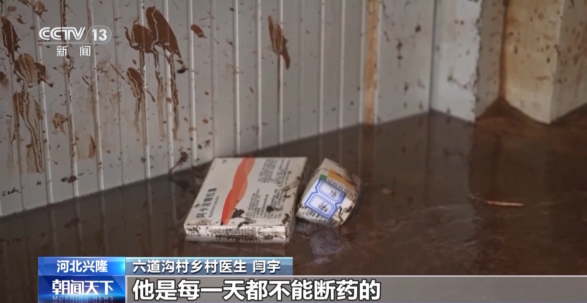 六道沟村乡村医生 闫宇:好多的药品被水淹了被污染了,有很多村民都急需这些药品,尤其一些老年人,有一些慢性病的老年人一天都不能断药。