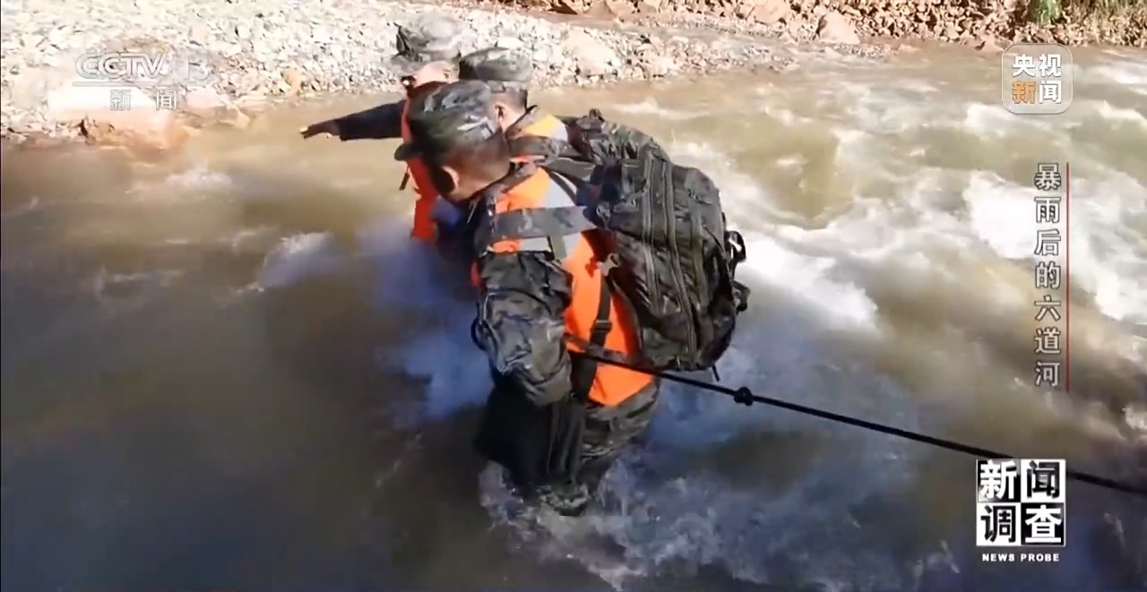 攀90°绝壁、蹚过激流 救援队抵达河北失联村开展救援
