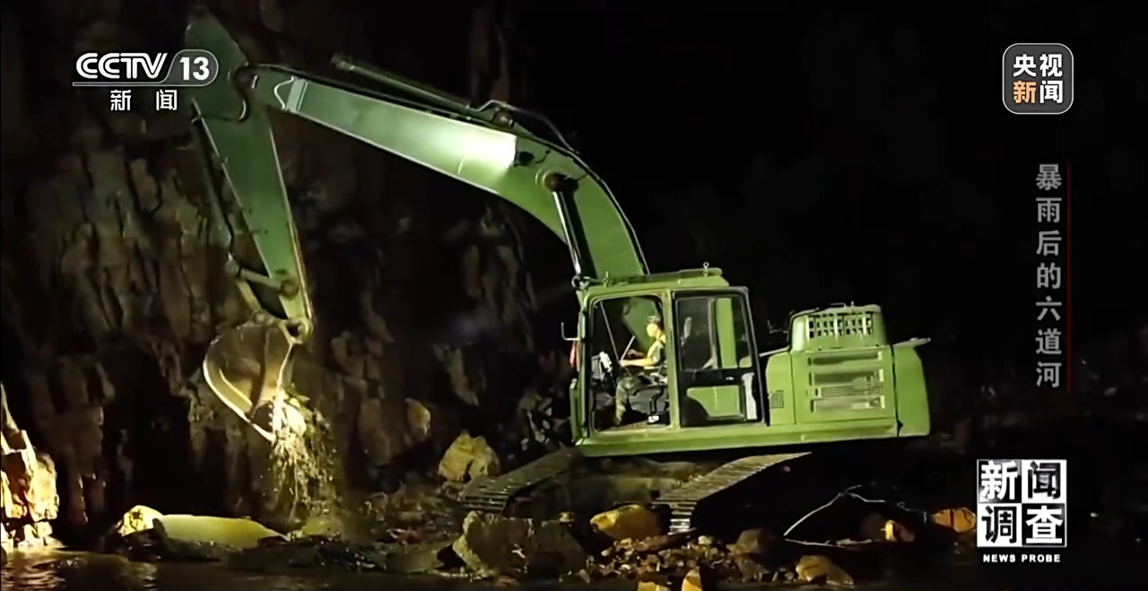 与此同时的五道河村,武警官兵也在驾驶挖掘机抢通道路,帮助村民清除自己无法清除的山石。