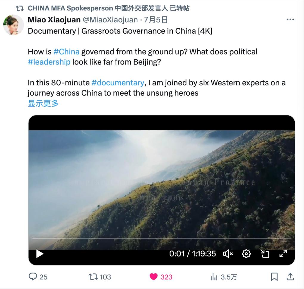 “这是一个从基层出发、展现中国治理真实面貌的视频,是我们真正想要看到的内容。”