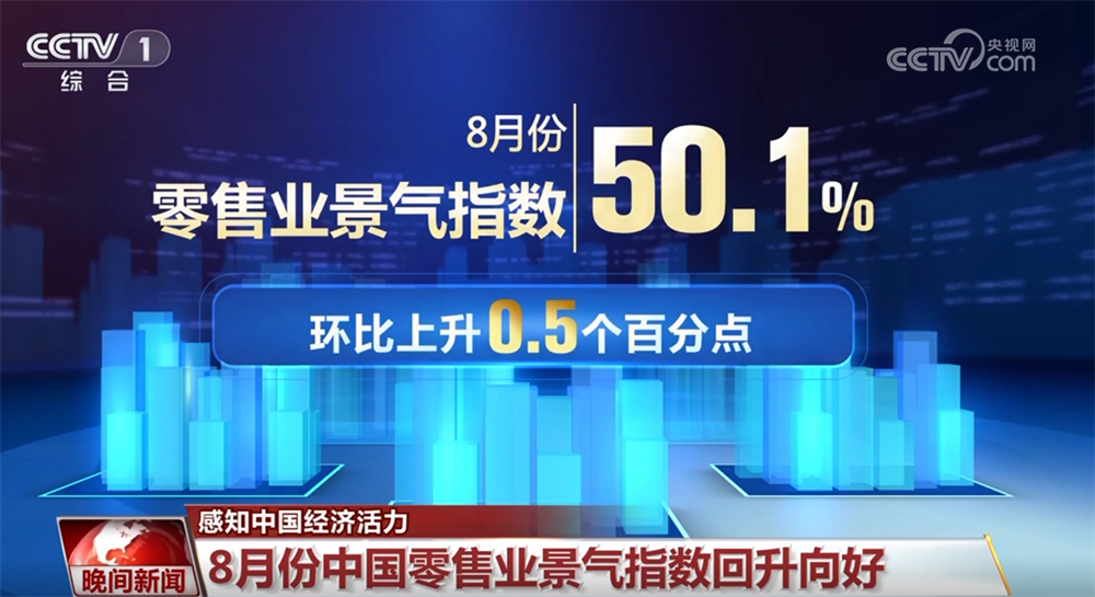 中国商业联合会8月6日发布数据显示,8月份,零售业景气指数为50.1%,环比上升0.5个百分点。其中,商品经营类指数上升1.0个百分点;租赁经营类指数52.1%,维持在中高位景气区间。今年以来,零售业景气指数有7个月保持在50.0%以上的扩张区间运行,零售企业经营状况持续改善,行业发展趋势向好。