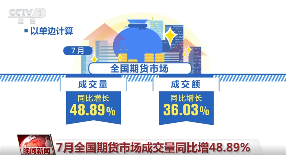 中国期货业协会最新统计,以单边计算,7月全国期货市场成交量同比增长48.89%,成交额同比增长36.03%。截至7月底,我国共上市期货期权品种152个。期货市场活跃度提升,体现了我国实体经济结构转型不断深化,资本市场服务国家战略和宏观经济的能力持续增强。