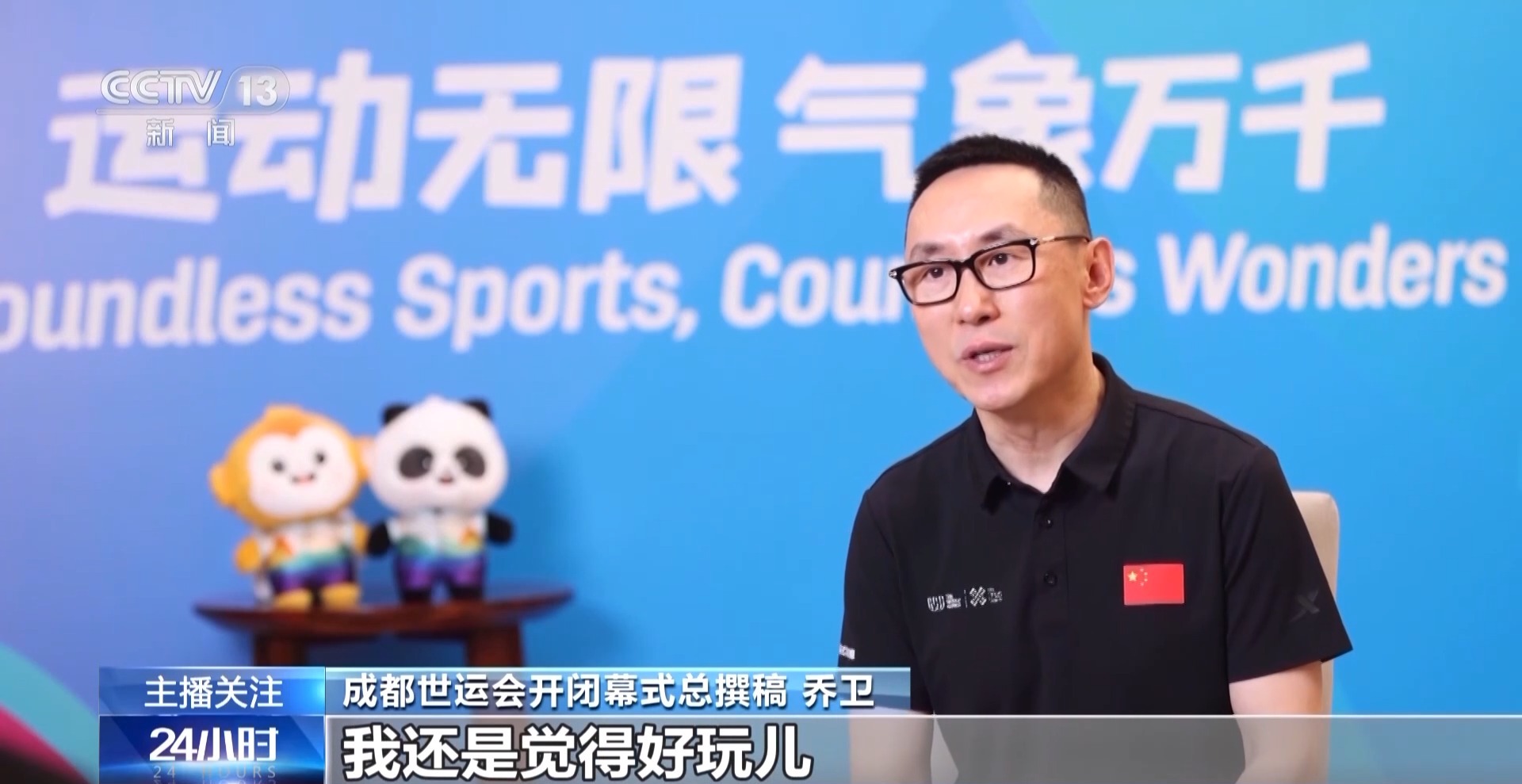 成都世运会开闭幕式总撰稿 乔卫:如果用一个词来概括的话,我觉得好玩儿。希望这一届世运会的开幕式是好玩儿的。其实我们不仅仅展现的是体育运动能够彰显生命特质的一面,其实也展现了成都这座城市更活跃、更有创新感、更加有声趣感的真正风貌。