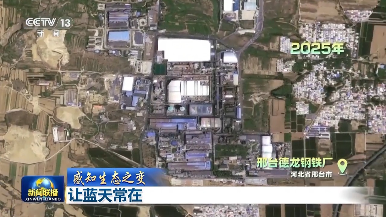 这是当时,环境监测卫星拍到的德龙钢铁厂,雾霾最严重的时候几乎看不出厂区轮廓。而如今,却是清晰可见,绿意葱葱。