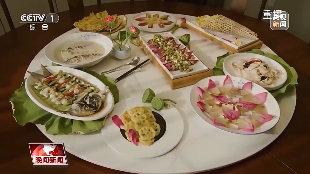 荷花不仅令人赏心悦目,还化身美食让村民游客一饱口福,衍生出荷叶茶、莲子、藕粉等产品销售火热。水面上,莲农们采莲的小船依次排开,满载一船清香。