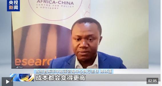 加纳智库非中政策咨询中心执行主任 弗林蓬:单从经济角度来说,加纳向美国市场出口任何产品,不论是加工产品还是未加工产品,成本都会变得更高。这也意味着,一旦加纳企业主的产品进入美国市场,将失去原来的竞争力。因为经营成本上升了,所以价格也会上涨。
