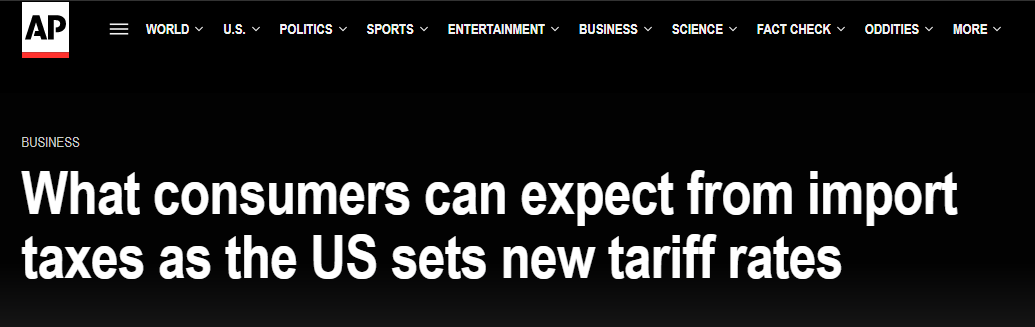 澳大利亚“对话”新闻网(The Conversation)的文章也提出了相同的观点,甚至认为最糟糕的经济影响或许尚未到来。文章称,特朗普政府关税政策在美国国内产生的后果,在经济上很可能“自摆乌龙”。美国或很快陷入困境,经济痛苦正传导至美国消费者。