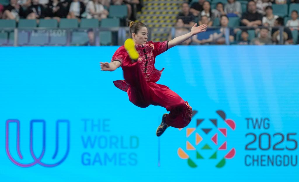 8月10日,在2025年成都世运会女子48公斤级泰拳决赛中,中国选手刘晓慧战胜泰国选手奥诺克夺冠。新华社记者 张博文 摄