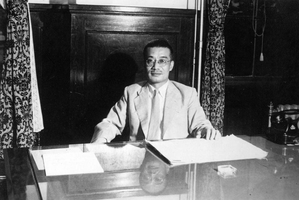 东京审判时期,梅汝璈在办公室留影(资料照片)。