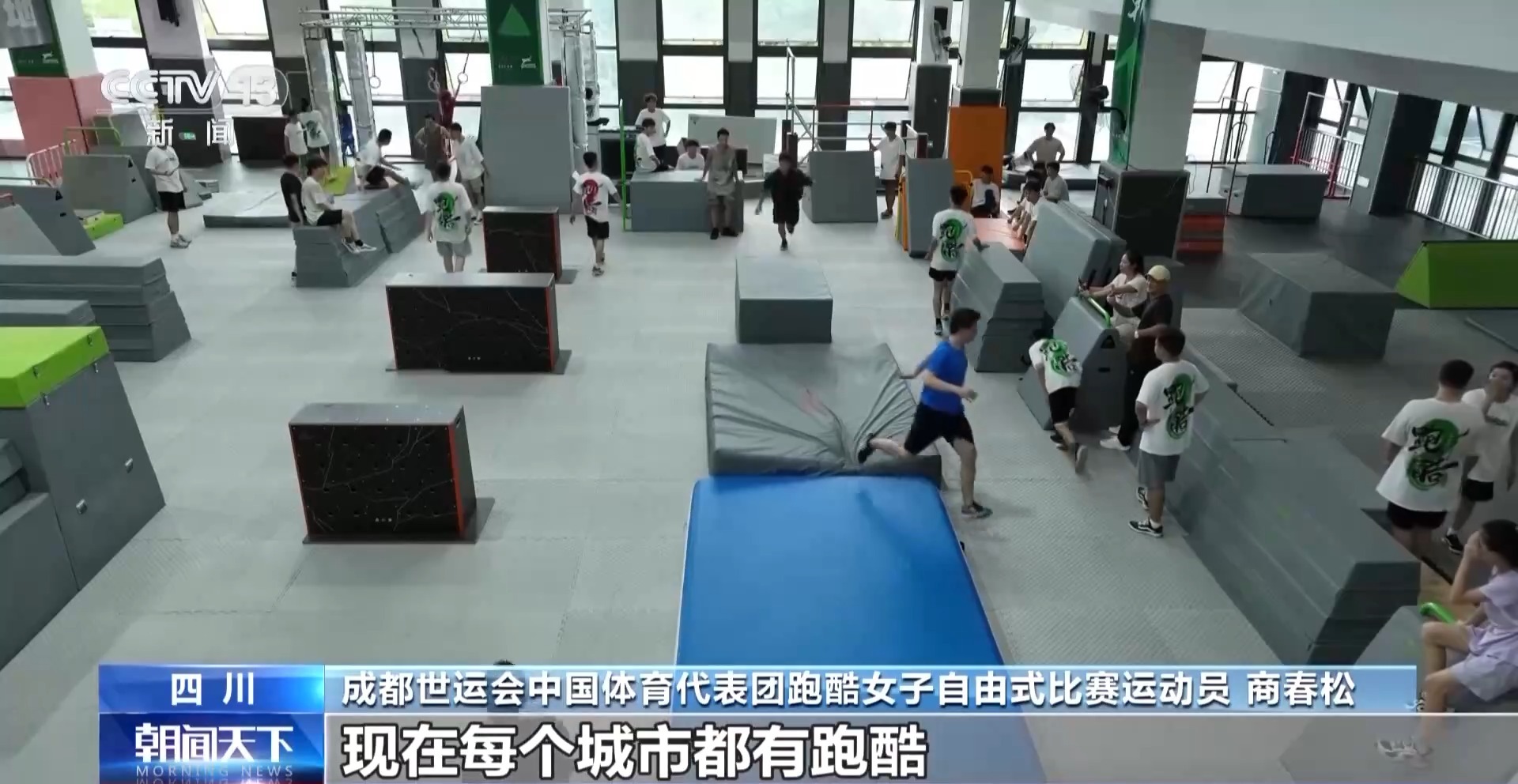成都世运会中国体育代表团跑酷女子自由式比赛运动员 商春松:它的门槛很低,比较自由,你可以有自己的想法加入跑酷的动作当中去。现在每个城市都有跑酷,未来希望更多的人能够加入跑酷这个大家庭。