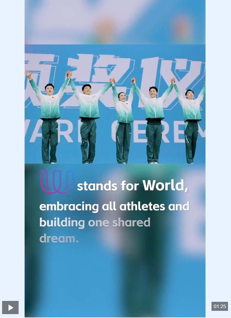 W是We,我们因成都世运会而相聚,携手共享胜利,共同庆祝每一次精彩瞬间。