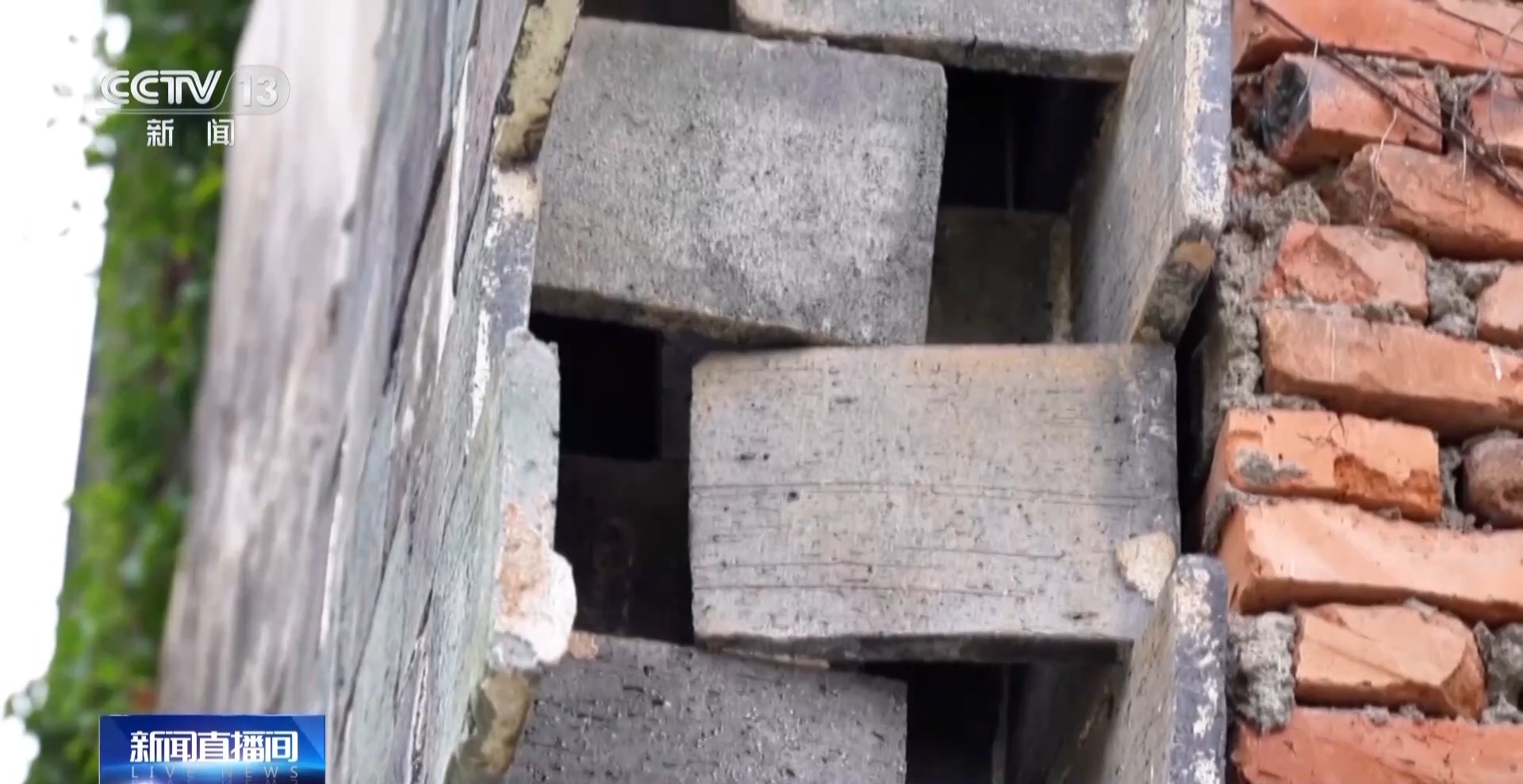 总台记者 彭雨佳:这堵墙看起来平平无奇,在修缮的时候可费了不少功夫。敲一敲,你会发现它并不是一堵实心的墙。这种墙叫作青砖空斗墙,是由青砖的大面与窄面交错砌筑的,可以在墙体中间形成一个空斗。不但省工省料,还能起到保温、隔音和防火的作用。这种墙对砌筑工艺要求非常高,在修缮的过程中,工作人员也秉持最小干预原则,通过使用这项传统的砌筑技艺将墙体按原样修复。
