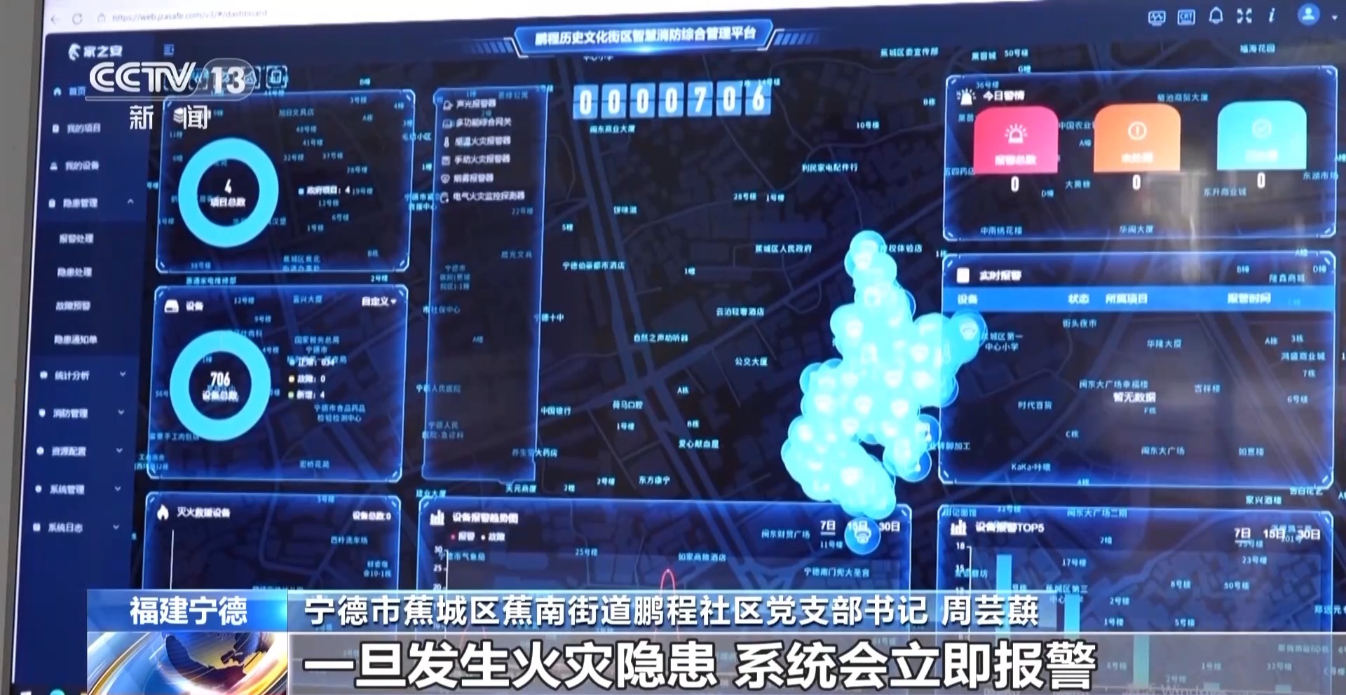 周芸蕻介绍,通过安装烟感、温感探测器,对街区内的烟雾、电路温度等进行实时监控。一旦出现火灾隐患,系统会立刻报警,值班人员可以马上赶往现场,最大程度预防火灾发生。