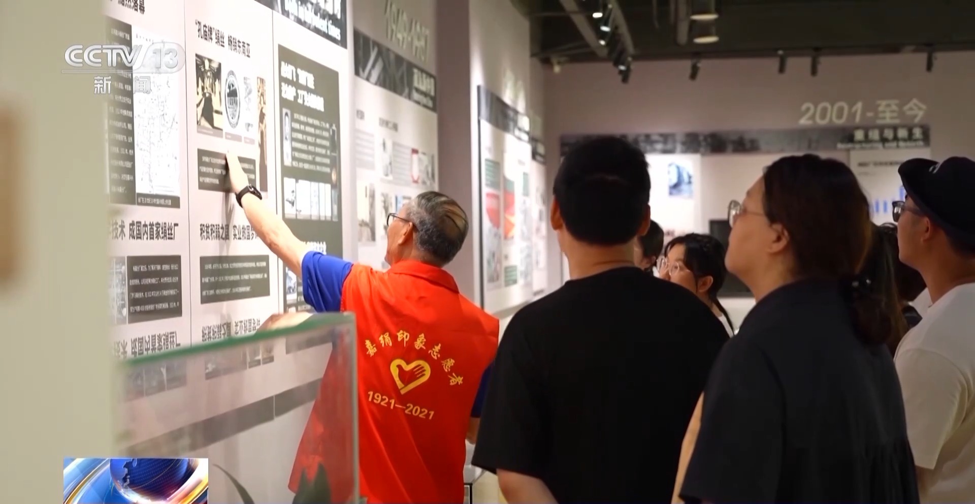 这是在“南湖天地”的嘉绢记忆展馆,通过老物件、历史照片展陈,观众可以了解嘉兴绢纺厂的百年故事。曾在厂里工作多年的退休职工,如今成了展馆的志愿讲解员。