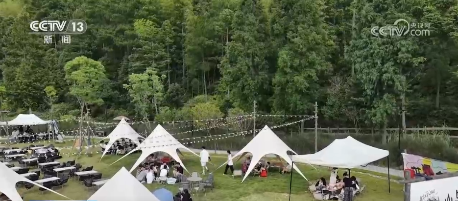 景色变美了,游客变多了。韶托村还不断升级村里的文旅产业,比如废弃的水库管理房被改造成了咖啡厅,闲置的荒塘则打造成了露营区,此外还引入垂钓、游湖、草坪音乐会等文旅业态。据统计,今年以来,韶托村共接待游客超15万人次,不少村民在家门口就吃上了“旅游饭”。