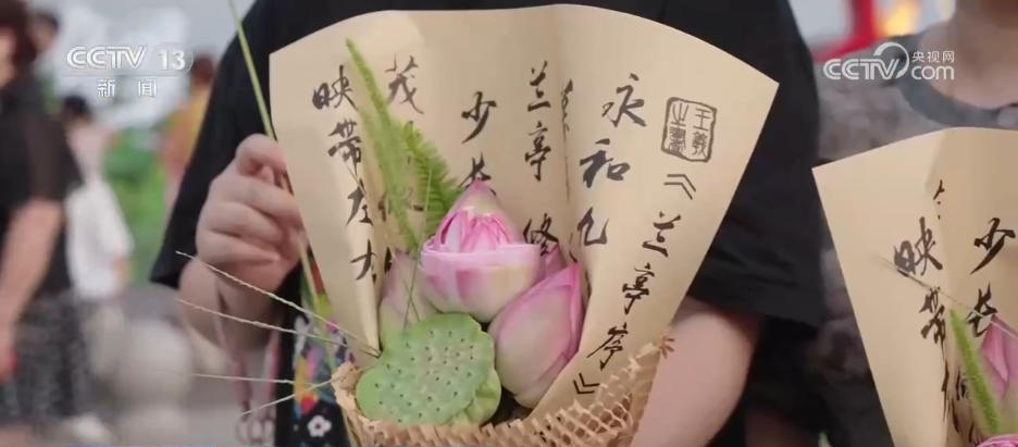 华灯初上,“荷花夜市”准时开市。种类丰富的农产品吸引着游客争相购买。其中,扎花摊位最火爆,人们攥着刚买的荷花,似要把诗词里的“荷风”直接捧回了家。