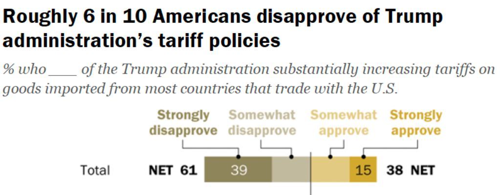 皮尤研究中心发布的最新调查结果显示,多达61%的美国受访者反对现政府关税政策,保持了自4月以来就有的民意趋势。