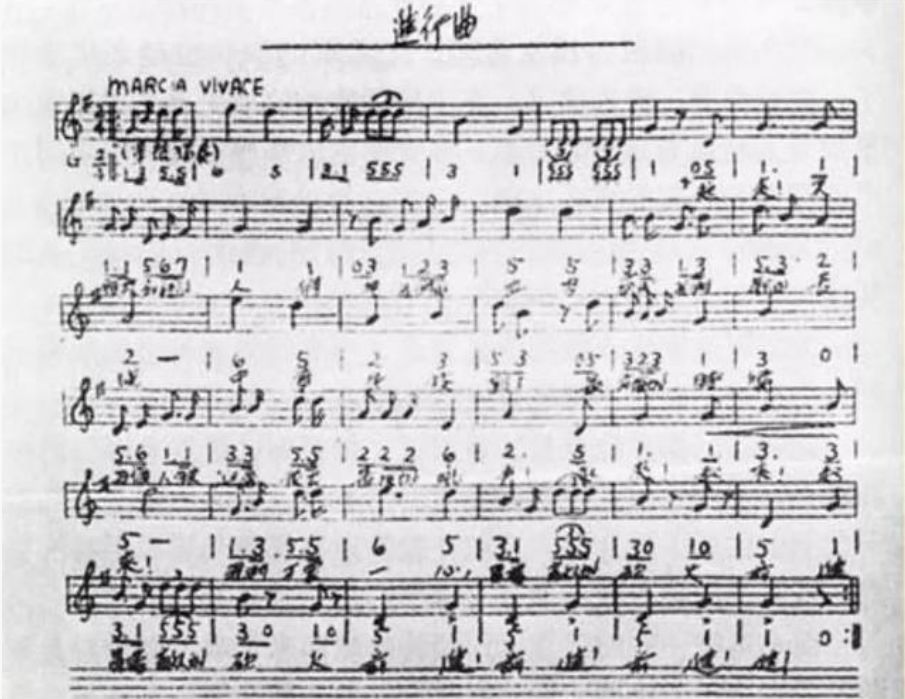 手稿被弄湿的地方有些字迹模糊了,孙师毅补上“炮火”二字,于是有了“冒着敌人的炮火前进”的唱词。田汉的好友聂耳主动请缨为主题歌作曲,后来这首歌被命名为《义勇军进行曲》。