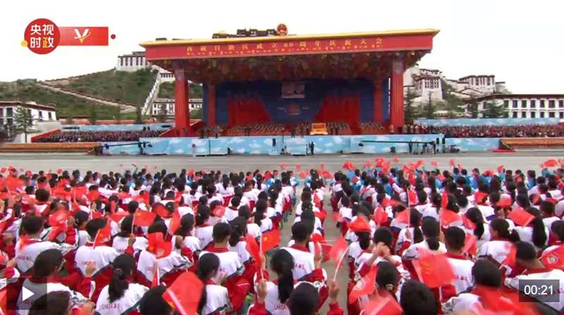 8月21日上午,西藏自治区成立60周年庆祝大会在拉萨隆重举行。