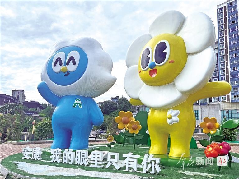 在安康的大街小巷、热门景点、机场车站,随处都能看到两个萌态十足的毛绒玩具形象。作为安康市打造的城市形象IP,以蓝天白云为元素的“安安”和以太阳花为元素的“康康”融合地方文化,推出后“圈粉”无数。