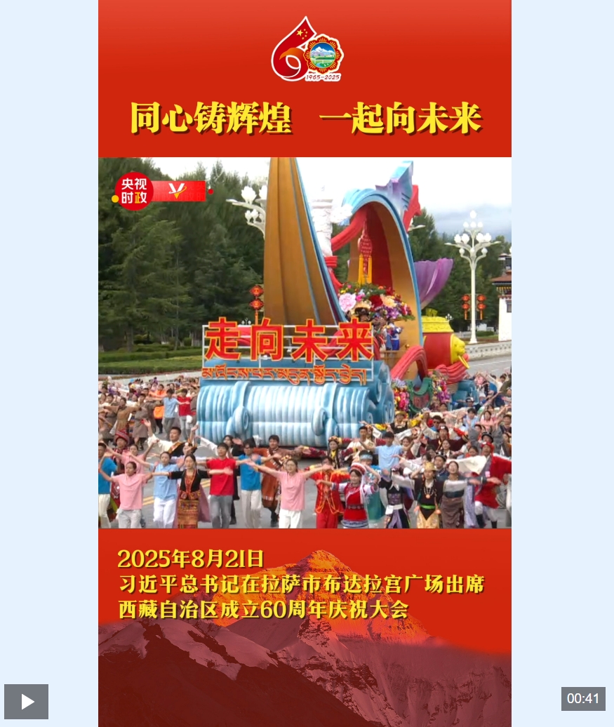 21日上午,习近平总书记在拉萨市布达拉宫广场出席西藏自治区成立60周年庆祝大会,同西藏各族各界干部群众约2万人共同欢聚,热烈庆祝西藏自治区成立60周年。
