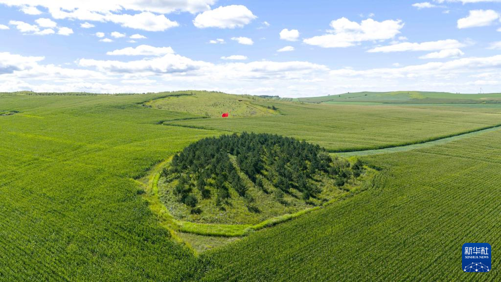 这是8月23日在内蒙古呼伦贝尔市阿荣旗六合镇拍摄的田野中的“红军岗”(无人机照片)。