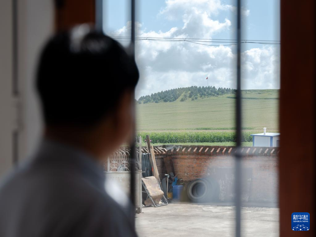 8月23日,内蒙古呼伦贝尔市阿荣旗六合镇,孙福贵在家中透过窗户遥望“红军岗”。